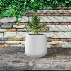 KANTE 16 in. W Square Pure White Concrete/Fiberglass Indoor Outdoor Elegant Retro Planter