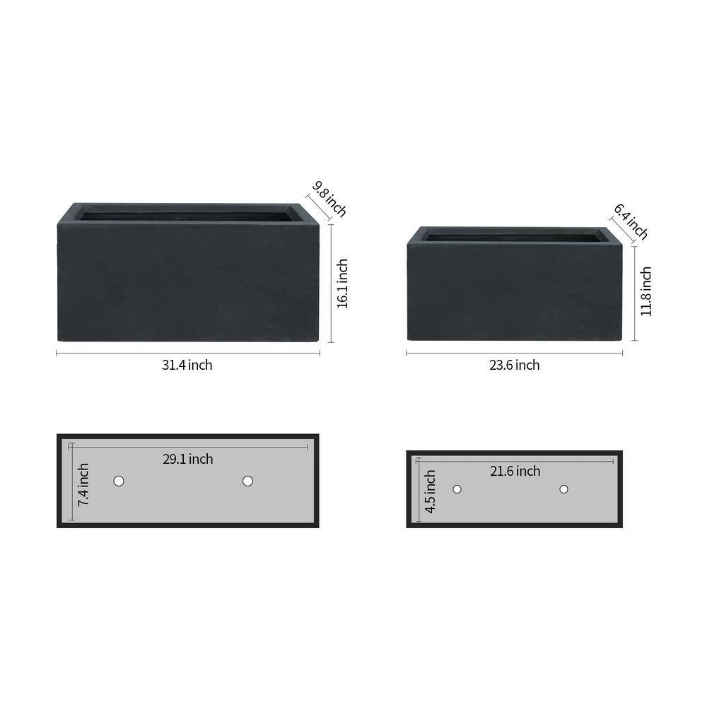 - Ideal size for indoor and outdoor: planters measure 9.8 in. W x 31.4 in. L x 16.1 in. H and 6.4 in. W x 23.6 in. L x 11.8 in. H and make great additions to any room, apartment balcony or large backyard patio by standing out with its unique look