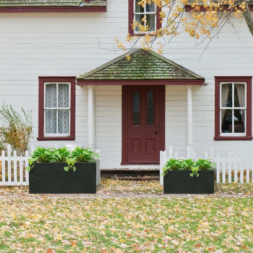 These elegant rectangle planters have authentic concrete finish with visible pores that make them beautiful contemporary pieces. The look and feel is true concrete but it weighs substantially less than it looks, making it easier to move around. It is smooth instead of rough concrete potters you might be used to. The size is very generous and can hold a good amount of plants without looking crowded. Would look great on apartment balcony or large backyard patio. Create a modern space using these long low planters. The straight lines and solid finish are a hot trend in modern landscape designs. Ideal for succulents and delicate plants that need room to grow. Made of light-weight concrete and weather-resistant fiberglass through an ecofriendly manufacturing process. Has no rubber, plastic and steel. This material has all the advantages of concrete such as strength, durability, weather and damage resistance, has strong UV resistant ability and stay well in wind, rain, hot and cold season.
